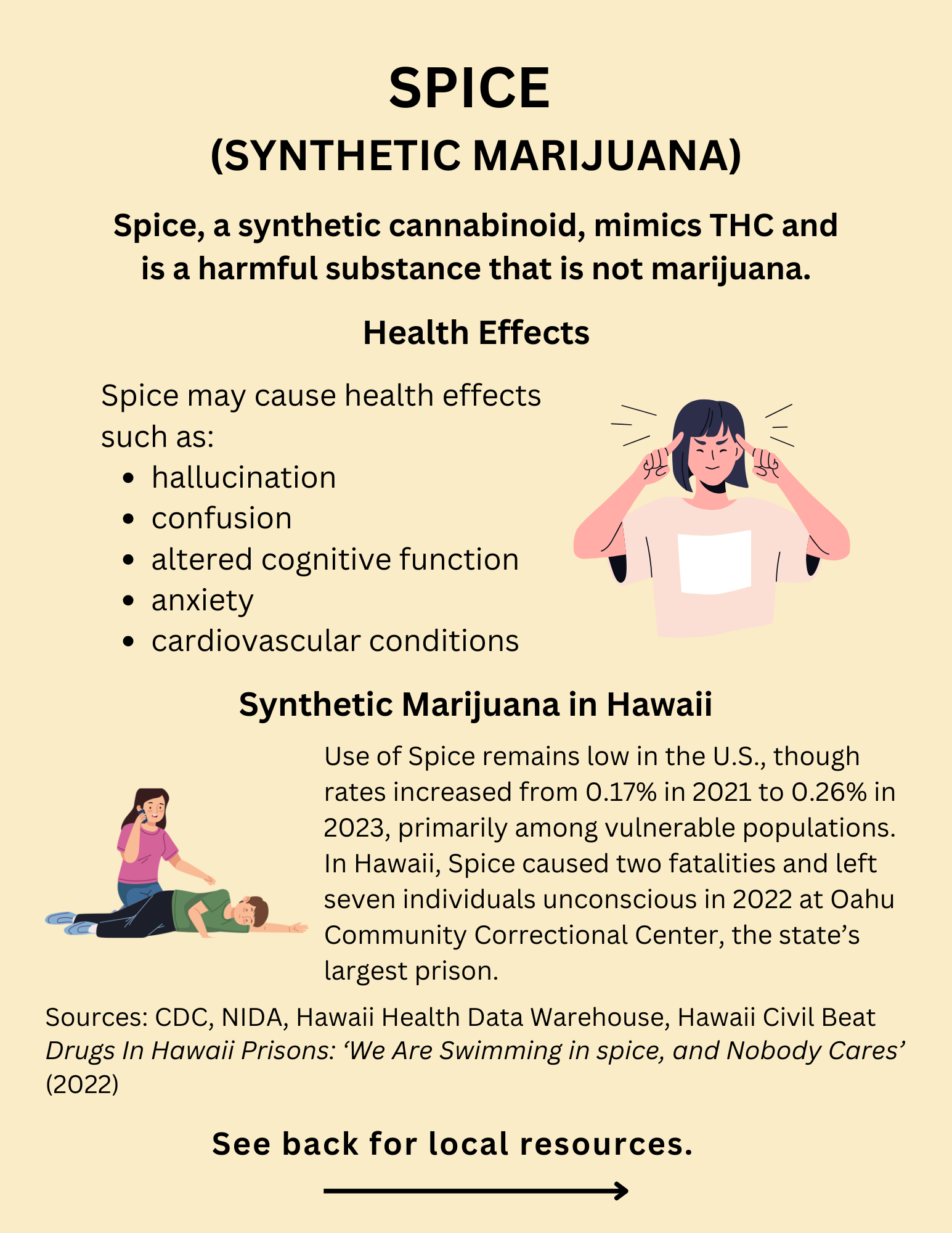 Spice is illegal and known to cause seizures, hallucinations, paranoia and aggression.