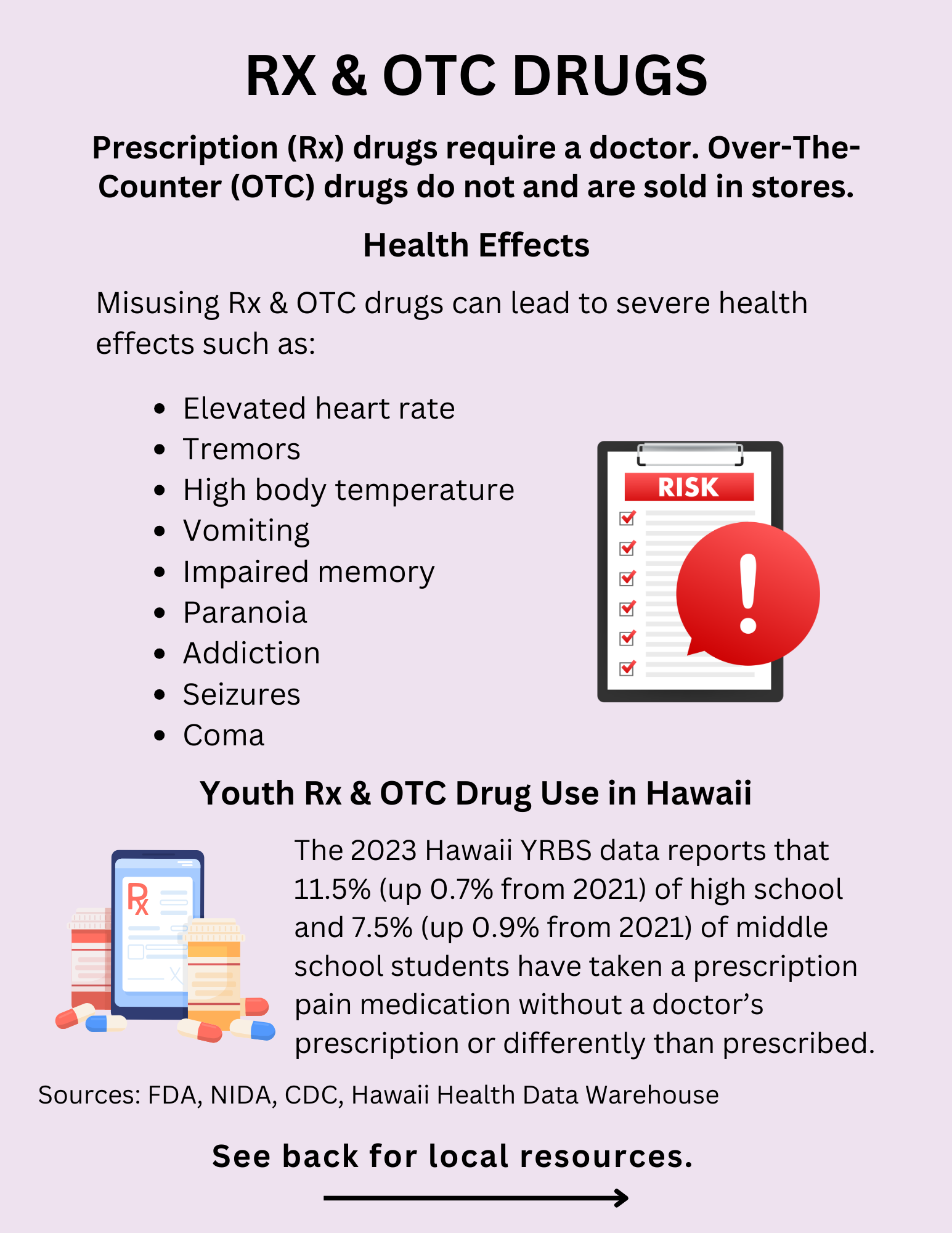 Rx drugs are drugs that legally requires a medical prescription to be dispensed. The most commonly abused prescription drugs are: